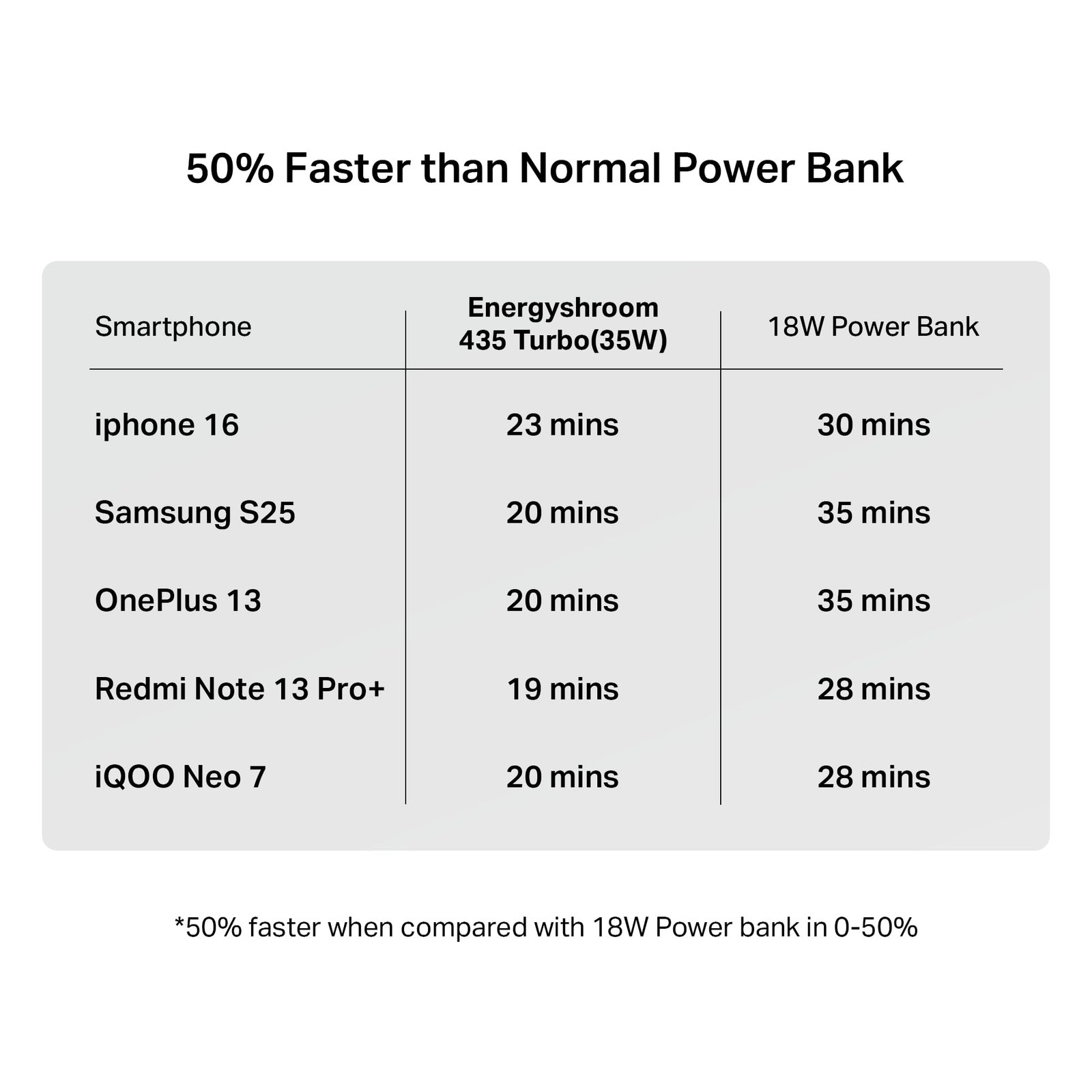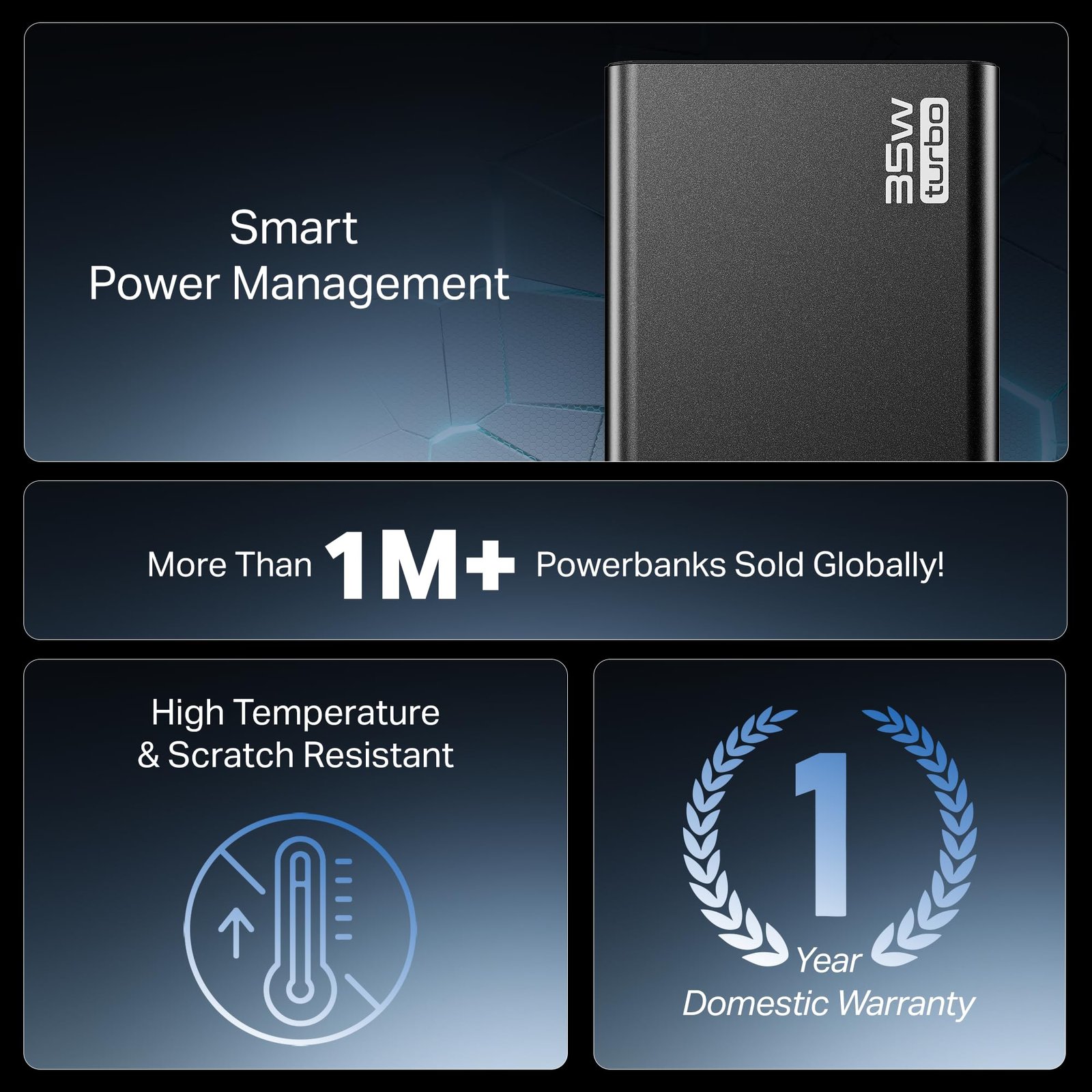 - 35W 2-Way Fast Charging Technology: Equipped with Quick Charge 3.0, Power Delivery, and Programmable Power Supply (PPS), the PB435 Turbo enables rapid and efficient charging for a wide range of devices.