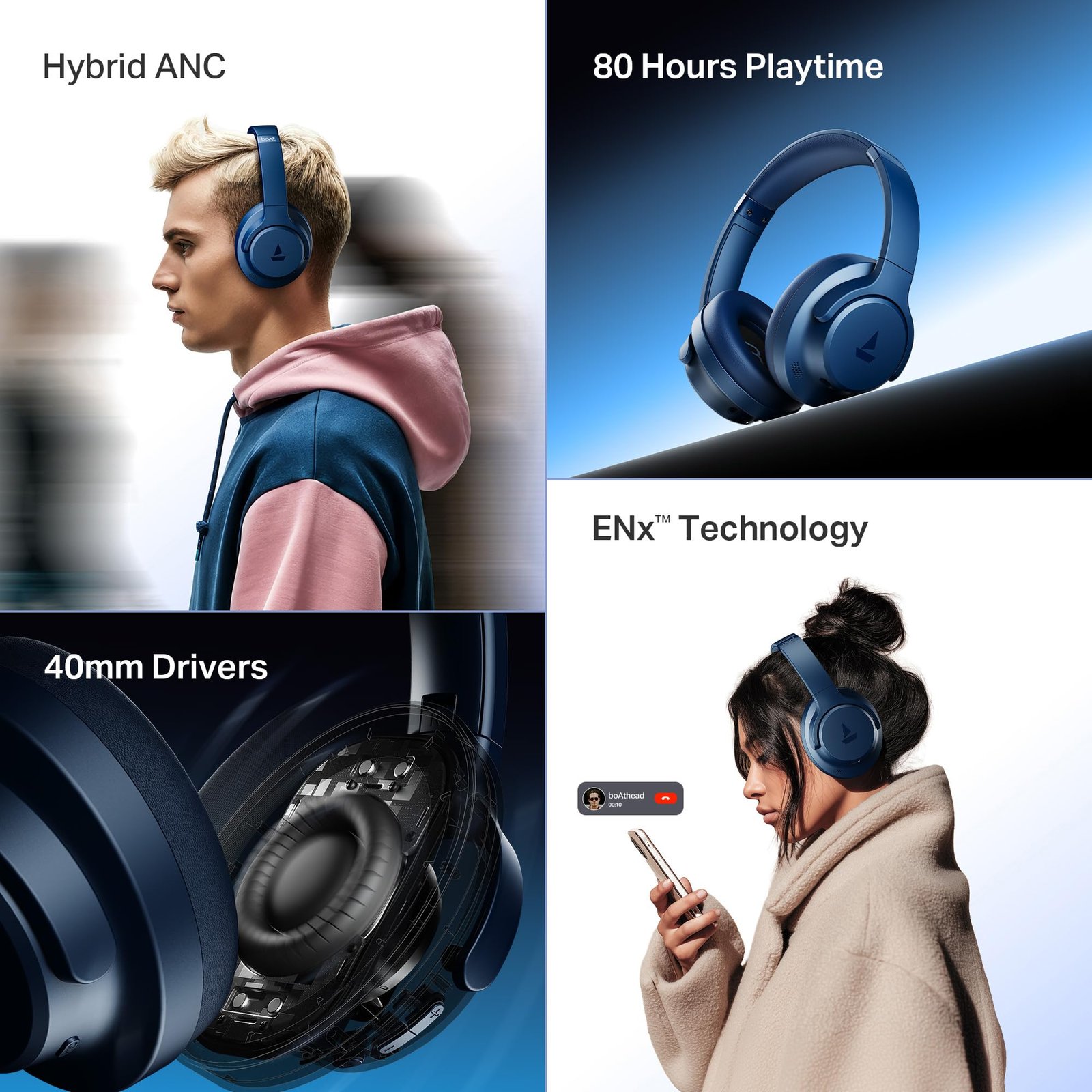• 40mm Drivers: Experience dynamic sound with powerful 40mm drivers. From cinematic soundtracks to high-energy beats, the bass-heavy boAt Signature Sound ensures every moment hits hard.
