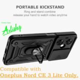 - Kickstand:-Stylish Aelishq armor back cover for Oneplus Nord CE3 Lite 5G Mobile. 360° rotating finger ring stand doubles as a kickstand. Slide Camera Cover protects the lens. Durable TPU material. Easy access to all features.
