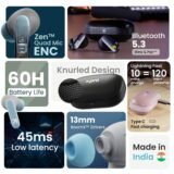 - ✅ Zen Quad Mic ENC: Seamless communication with 4 advanced Environmental Noise Cancellation microphones guarantees crystal-clear, interference-free calls, catering to professionals and daily conversationalists alike