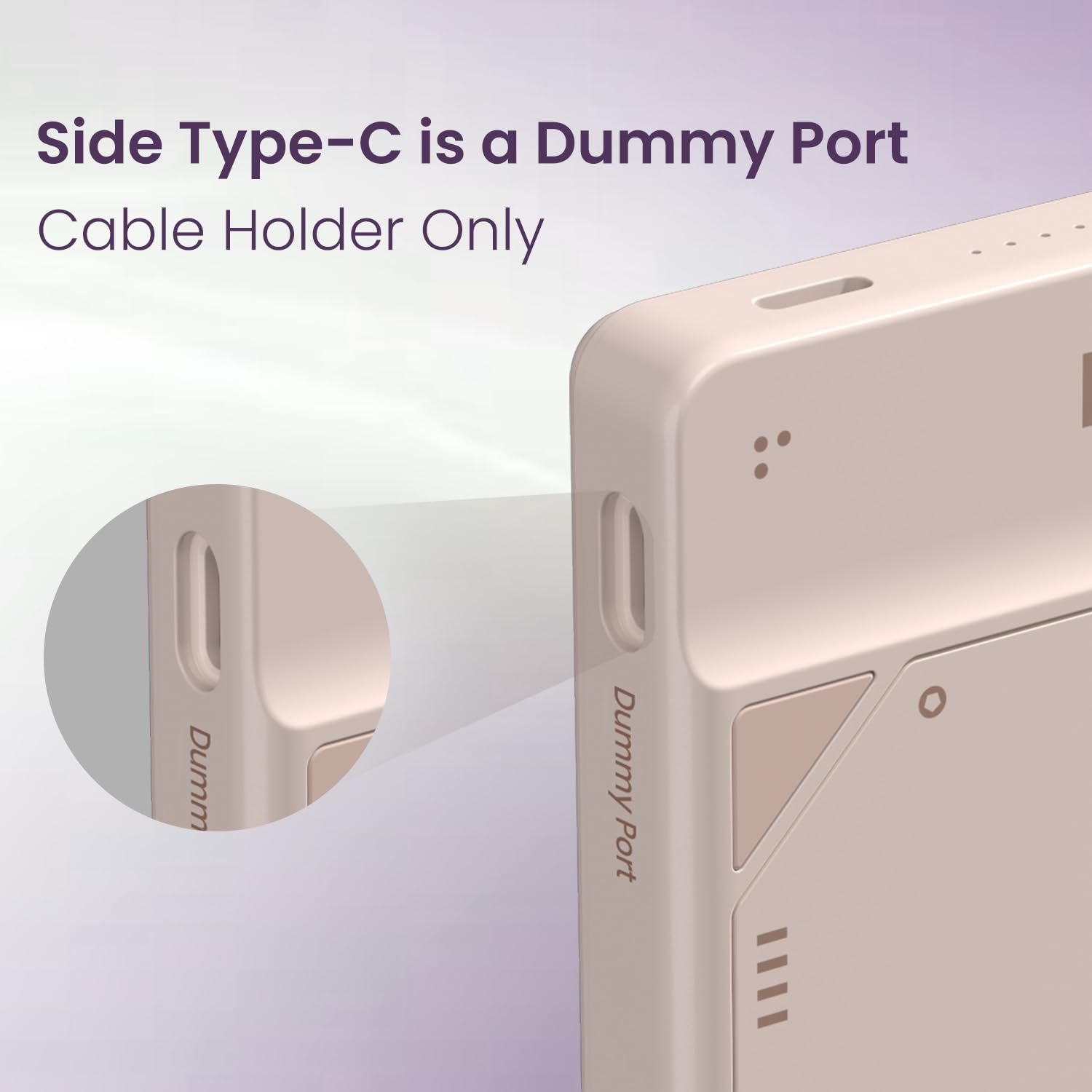 - Important Note( Dummy Type C Port)- The Type-C slot on the side is a dummy docking port designed only to park the built-in cable. It does not charge or transfer power/data. For charging, use the top Type-C PD port and/or the USB-A port