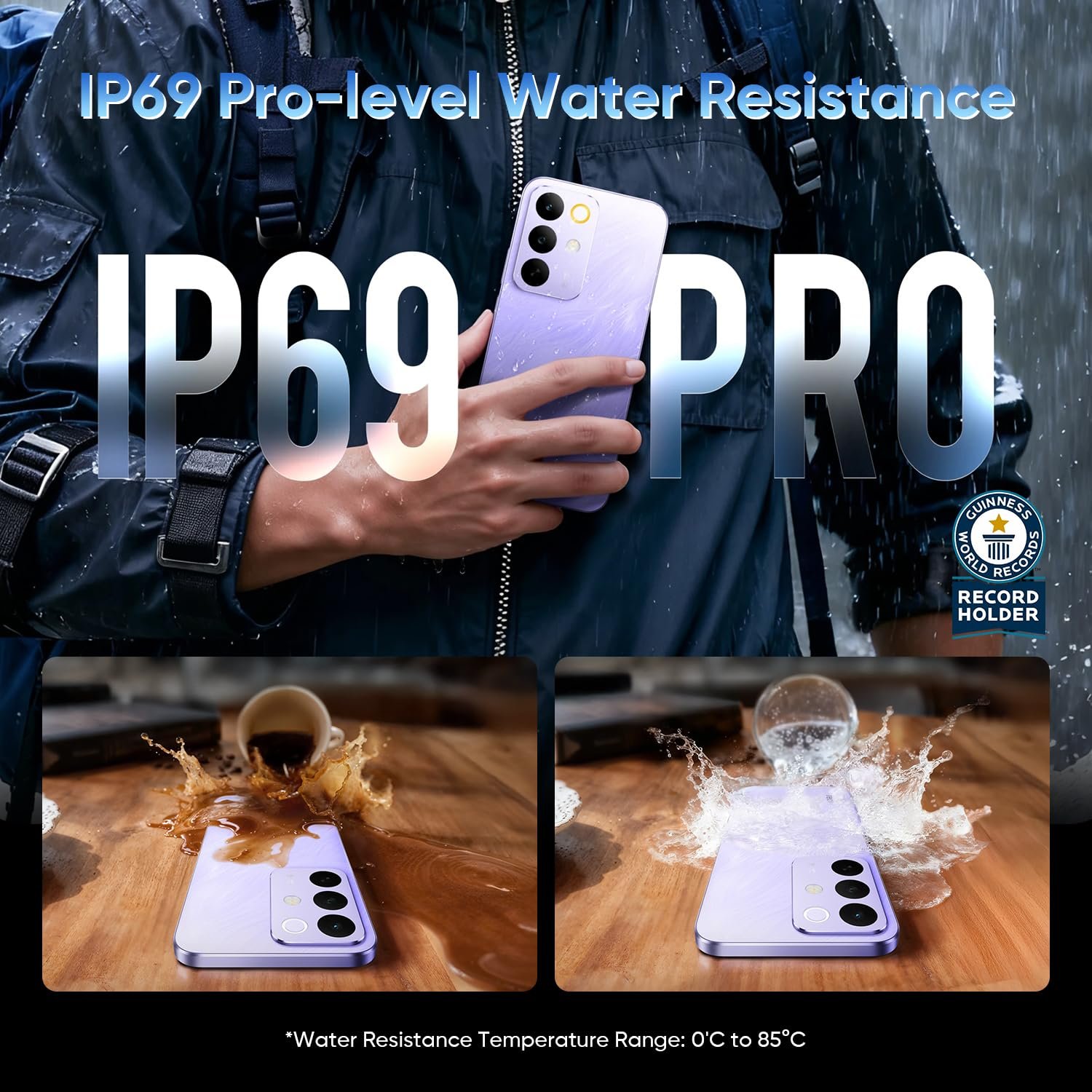 • 【IP69-Level Professional Water and Dust Resistance】The C85 5G Smartphone features IP69 protection certification. It not only withstands daily splashes but also resists high-pressure water jet sprays and immersion to certain depths, ensuring reliable performance even in harsh environments. Additionally, it offers drop resistance, easily handling everyday accidental falls for dependable durability.