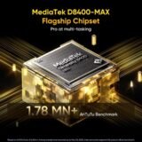 - Realme GT 7T Smartphone is powered by the MediaTek Dimensity 8400-Max 4nm chipset, delivering powerful performance that ensures smooth multitasking, high-frame-rate gaming, and HD video editing without lag. Experience next-level responsiveness!