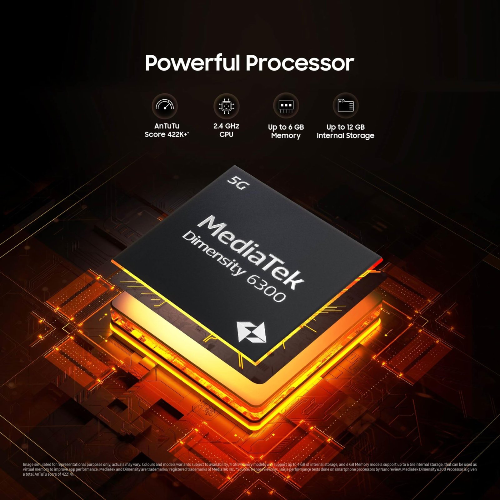 - Monster processor – Segment Leading MediaTek Dimensity 6300, AnTuTu score 422K+, Latest Android 15 Operating System having One UI 7.0 platform, 2.4GHz, 2GHz Clock Speed with Octa-Core Processor, Upto 6GB of RAM