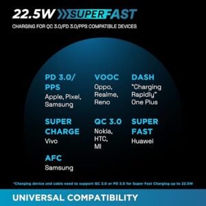 URBN 20000 mAh Premium Edition Nano Power Bank | Two-Way 22.5W Super Fast Charging | Pocket Size| Dual Type C Power Delivery (PD) Output + 1 USB Output for Quick Charge (Black) USB Type-C Input