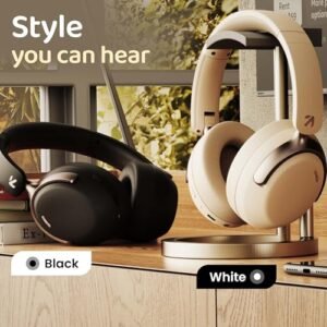 GOBOULT Newly Launched Soniq Over Ear Bluetooth Headphones with 70H Playtime, 40mm Bass Drivers, Zen™ ENC Mic, Type-C Fast Charging, Dual Pairing, AUX, Wireless Headphones (White)